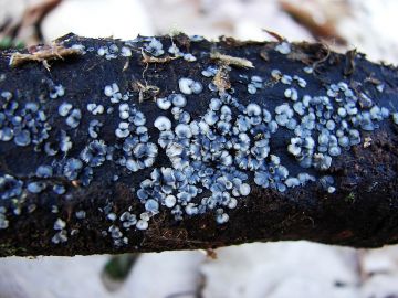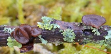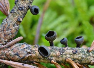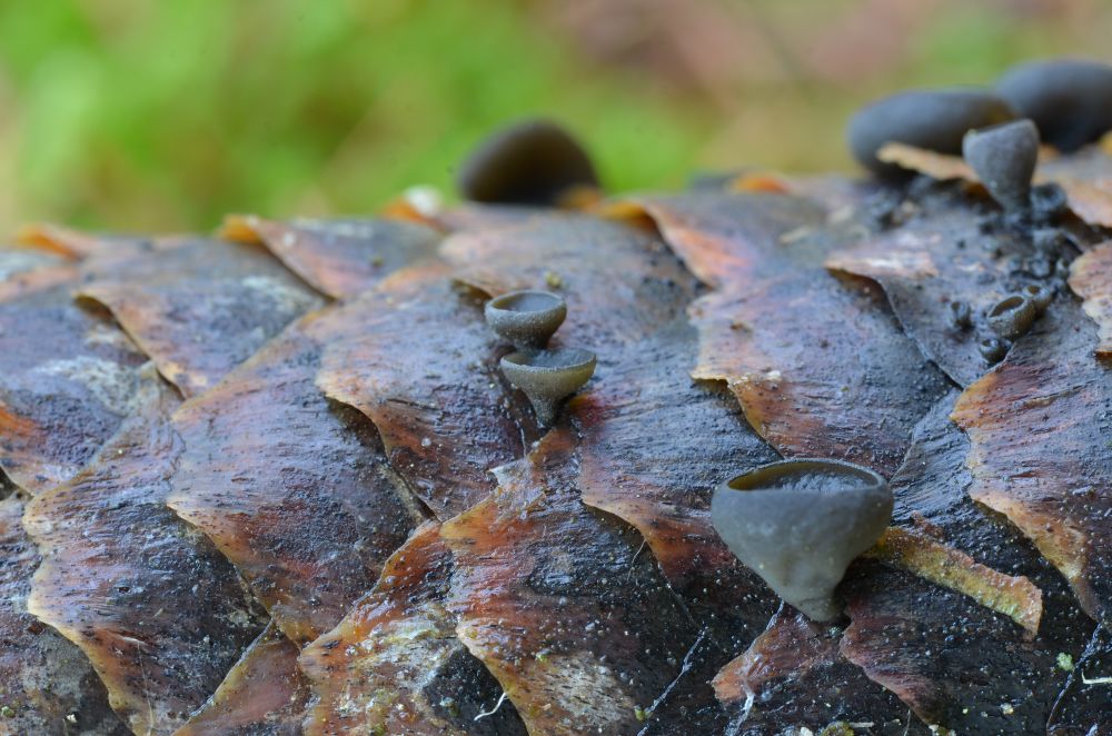 Terčka šišková (Rutsroemia bulgaroides), na šiškách smrku ztepilého.