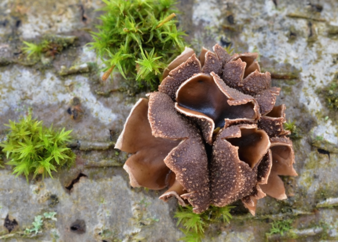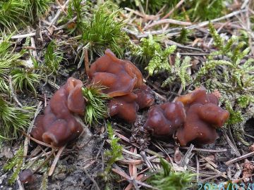 Ucháč obrovský (Gyromitra gigas), smíšený listnatý les.