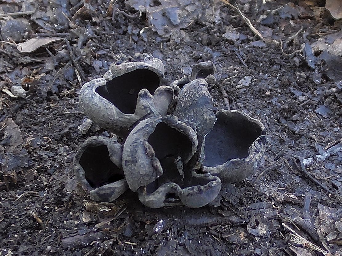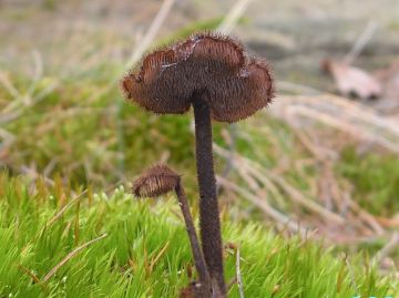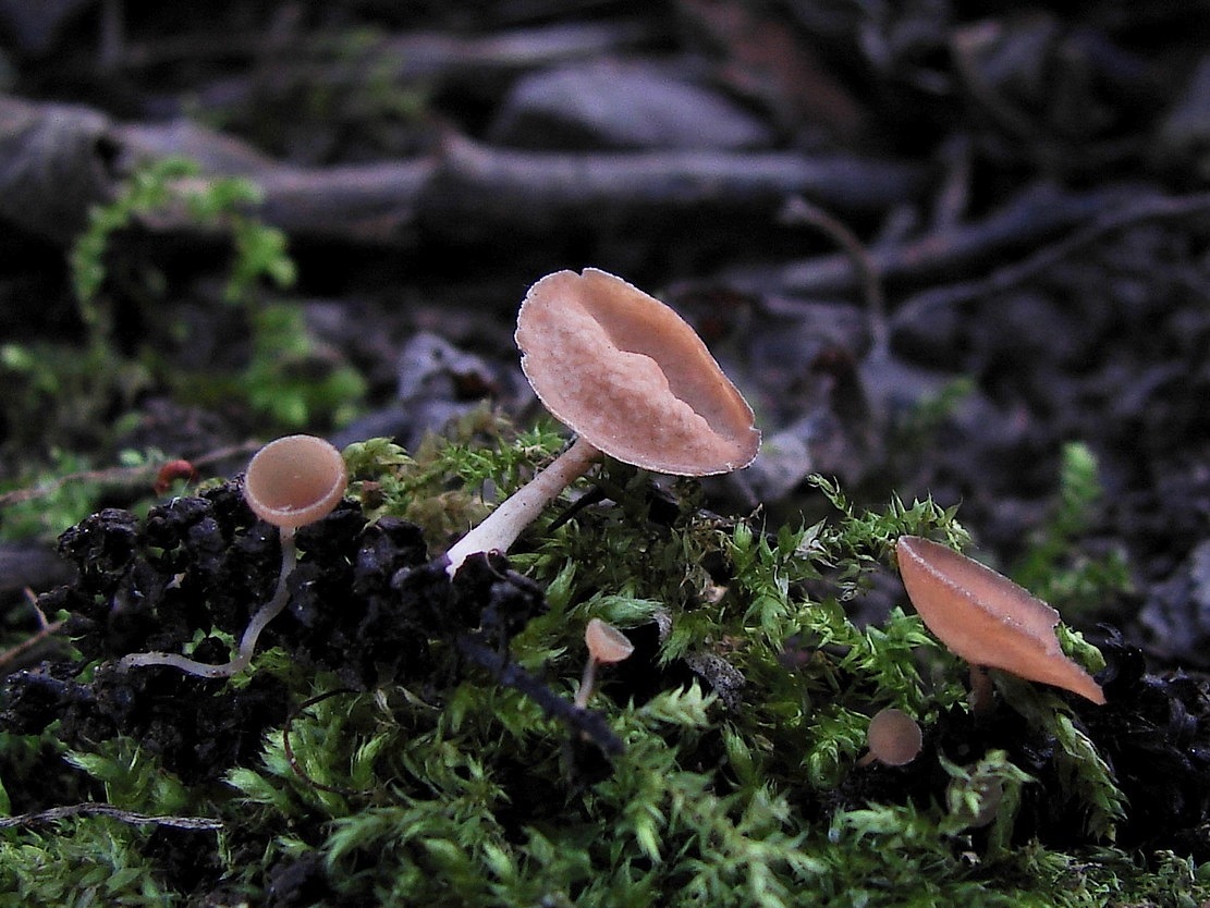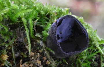Ušíčko černé (Pseudoplectania nigrella), mechaté cesty, linky, v jehličnatých lesích.