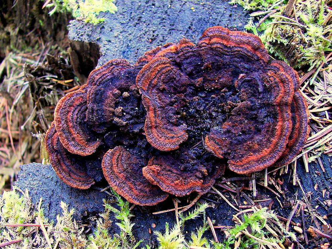 Lžičkovec šiškový (Auriscalpium vulgare), v prosvětlených borech, na šiškách, hojný.