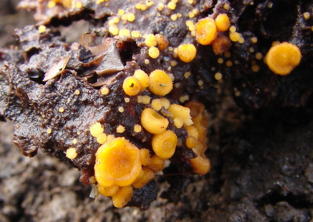 Hlízenka (Sclerotinia sp.),ve spadu pod topolovým porostem.