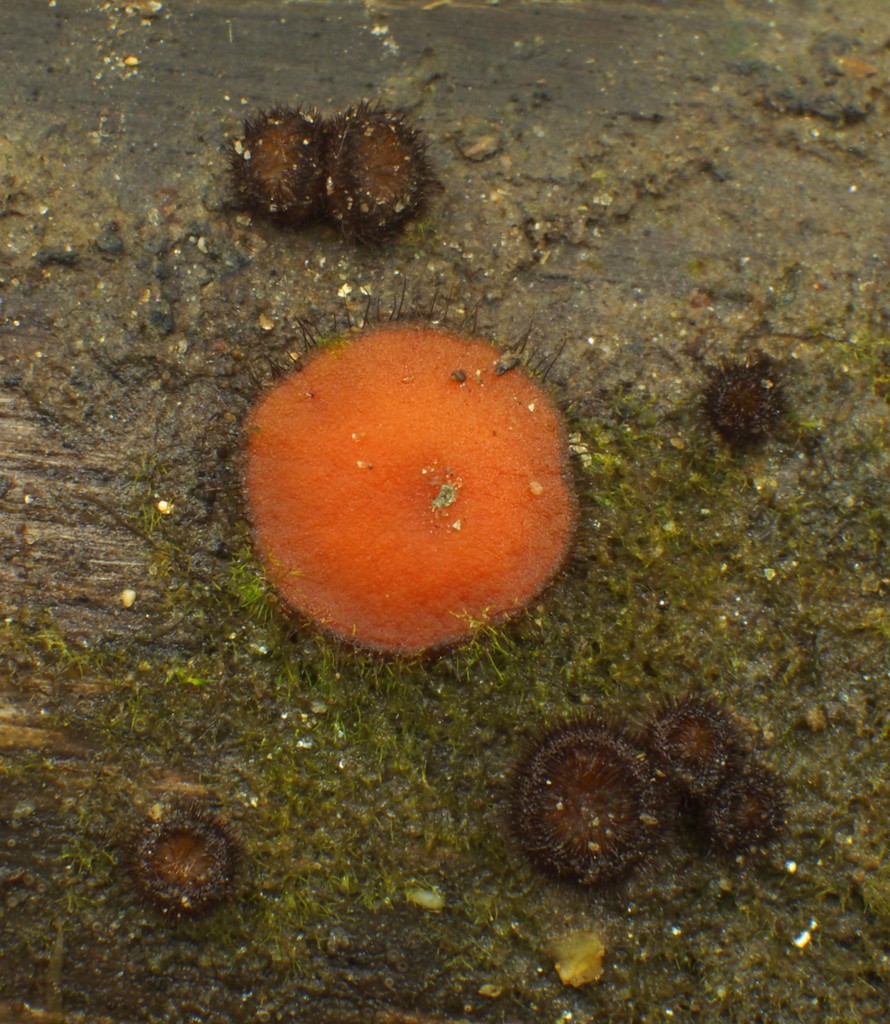 Tak jsem zmikroskopoval opětovně a tentokrát jsem byl zjevně úspěšnější. Chloupků jsem tam viděl podstatně více. Rozměry chloupků byly cca 50-100 x 7-14,5 μm a zúžil jsem si možnosti na dva druhy: Anthracobia nitida a Anthracobia tristis. U Anthracobia nitida se mi úplně nezdá to, že má chlupy 1-3krát septované a přestože ve shlucích se hůř identifikuje celková rozloha chlupu, tak jsem tam zaznamenal i 4krát septování, což je vidět na fotce, takže spíš bych to viděl na tu A. tristis.