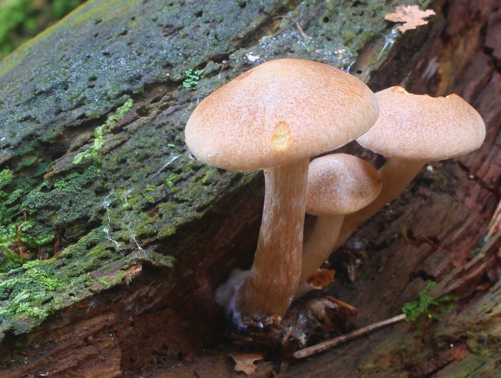Opatrně tipuju šupinovku rodu Gymnopilus, ale moc jistá si tím nejsu. Z čeho asi mohlo být to dřevo (aspoň listnáč/jehličnan)?