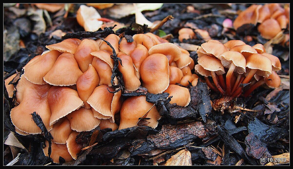 Penízovka červenonohá vyrostla v obrovském množství na štěpce v městském parčíku
