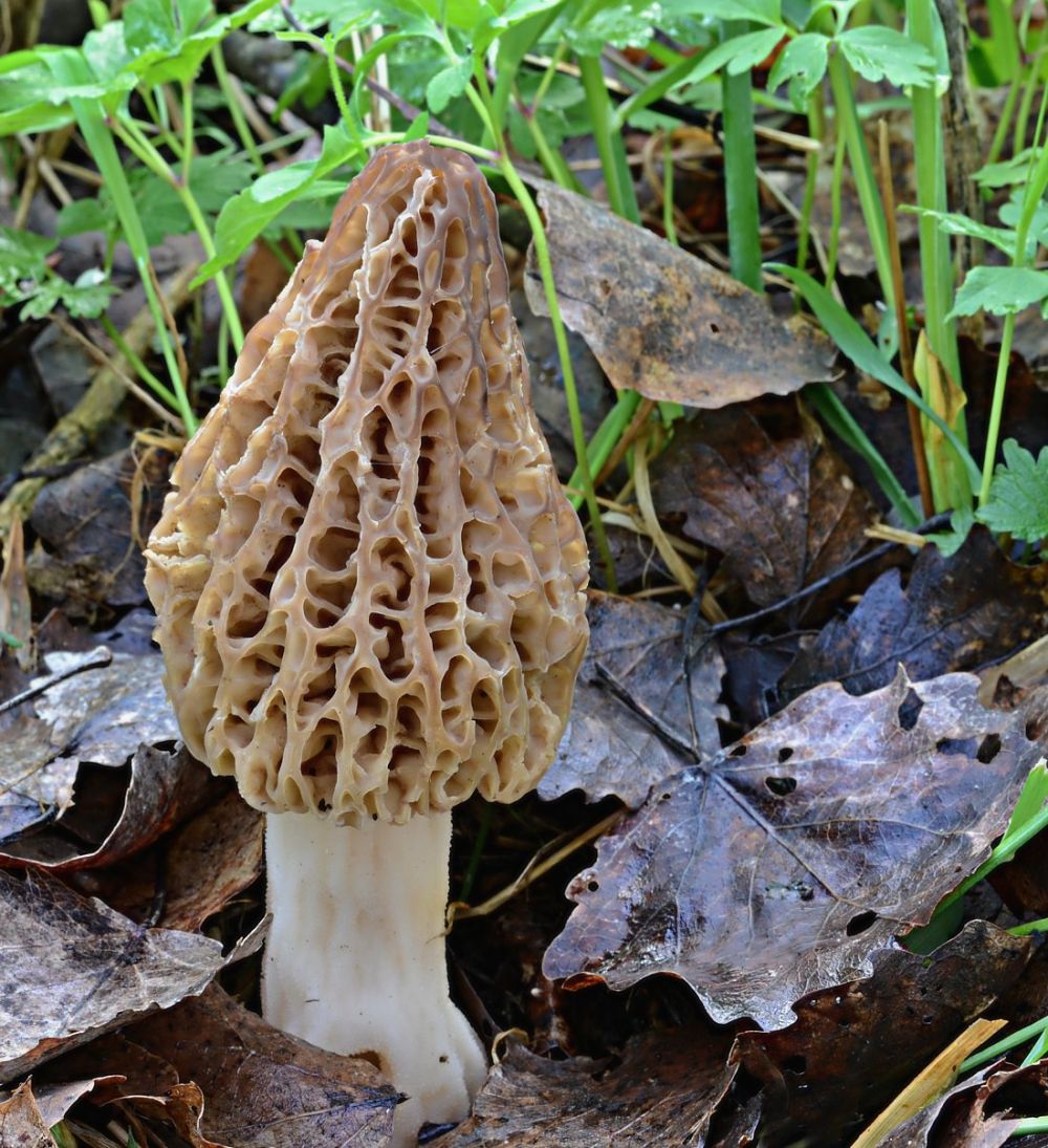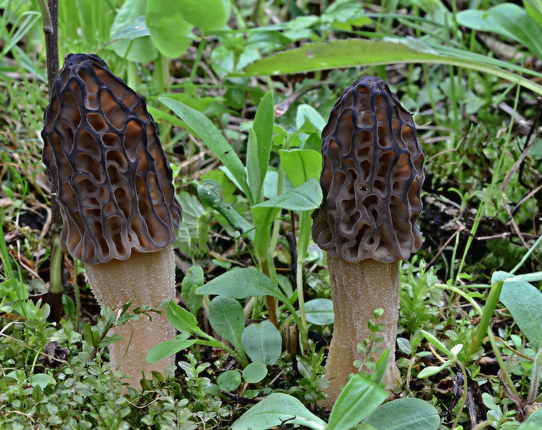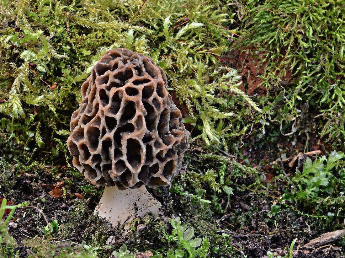 Smrž z okruhu obecný (Morchella sp.), pod jasany