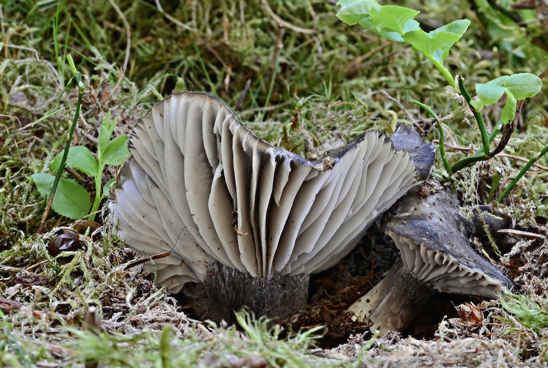 Pavučinec červenokaštanový (Cortinarius vernus), smíšený listnatý les.