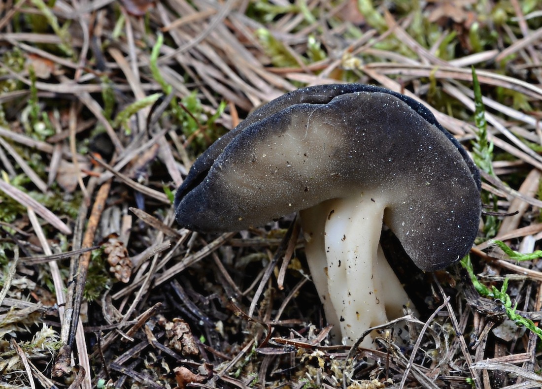 Chřapáč Qulétův (Helvella solitaria), pod listnáči (vrba), při okraji cesty.