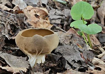 Kališník obecný (Helvella acetabulum), smíšený listnatý les, převaha osik.