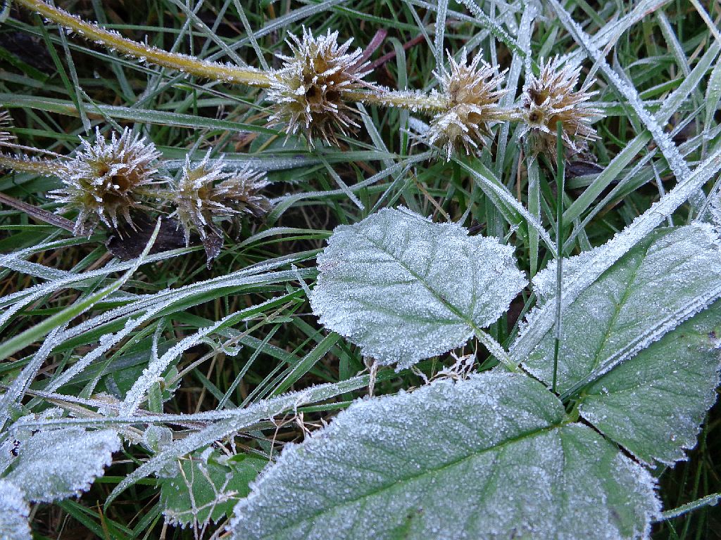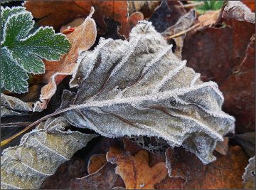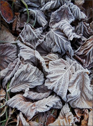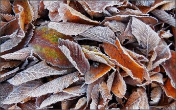 Listí vytváří v kombinaci s jinovatkou pozoruhodné obrazy...