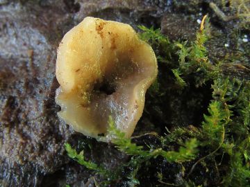 Plodnice (teda alespoň jednu, protože zbytek jsem vytratil) této houbičky, kterou jsem našel na vlhkém místě na začátku srpna minulého roku na zahradě, jsem dal na určení panu Stanislavu Tutkovi, kterému ještě raz děkuji za zájem o identifikaci zaslaných položek. Napsal mě, že by to mohla být zemnička prvoklíčová, Octospora cf. gyalectoides, ale pokud vím, pro přesnější určení tady hraje roli i určení hostitele...fotografované plodnice měli přibližně jeden milimetr...fotil jsem je asi dvě hodiny, susedi, co za plotem obráceli seno se na mě podivně dívali, jak mě viděli u hromady dřeva na vhkém místečku, kde skoro nebyla tráva ve stínu, jak tam furt klečím s foťákem a fotím pro ně asi hlínu