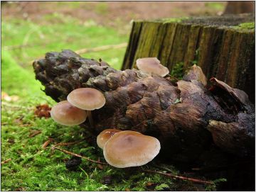 ... všude na pařezech rostou třepenitky makové, ale najít neporušený trs je umění