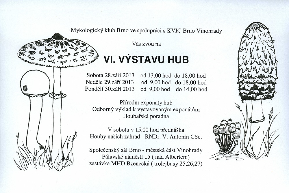 Zvu všechny na naši výstavu. Kdo přijde pomoci v sobotu dopoledne, třeba přinese košíček hub, dostane se mu vřelého a řízkového a koláčkového přivítání, pro neřidiče je nachystáno i vínečko. :-)