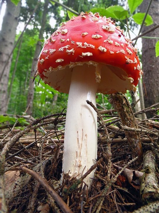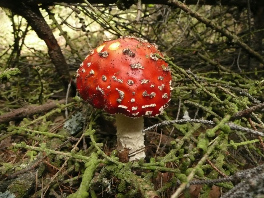 V ČR je pouze 3 % úmrtnosti. Mezi hlavní obsahové látky patří kyselina ibotová a kyselina ibotenová, která je nejvíce obsažena v kloboucích houby. Tato kyselina způsobuje převážně trhání svalů aj. dále TOXINY muscimol a muscazol, které působí na centrální nervovou soustavu a vyvolávají halucinace a poruchy vědomí. Nejznámější jed muscarin z dlouhým chemickým názvem 2-methyl-3-hydroxy-5-trimethylamoniumtetrahydrofuran. Je to tzv. parasympatikomimetická látka, tzn. Že působí na parasympatické nervové vlákna vedoucí k mimickým svalům obličeje. Účinkuje už 15-30 minut po požití plodnic. Otrava se projevuje zvracením a ztrátou vědomí, dále rozostřením zraku a problémy s dechem. Tento stav může trvat i dvě hodiny. Smrt nastává zástavou dechu nebo selháním srdce. Otravy jsou v ČR ale velice vzácné. To především pro známost a nápadnost houby.