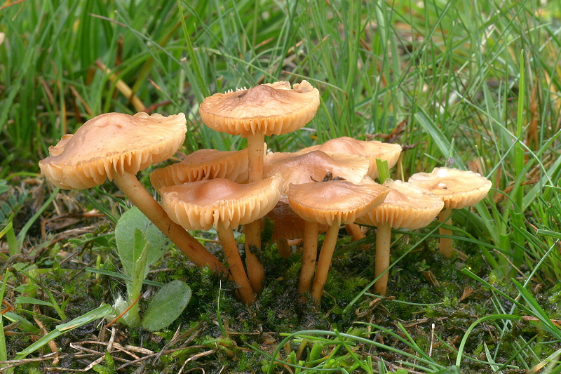 Lupeny jsou velmi řídké, tlusté, barvy bílé až krémové, přecházející do béžové.