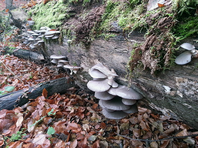 Jen doplním,že hlíva na smrku je realita,na snímku přidávám do atlasu,jedná se o nález Míry "Hombré" Vondráčka,smrková monokultura,stáří cca 70-90 let.Sám jsem před sedmi lety nalezl na smrkových pařezech,asi padesát metrů od sebe vzdálených dvě nádherné obrovské"kytice"hlívy ústřičné var.holubí v barvě od téměř tyrkysově zelené až do ocelově modré..věčná škoda,že jsem tehdy ještě nefotil.