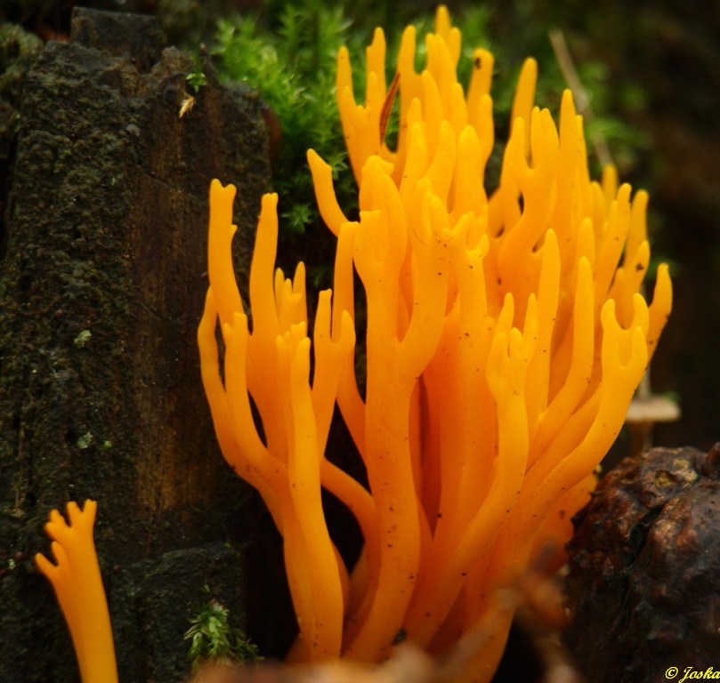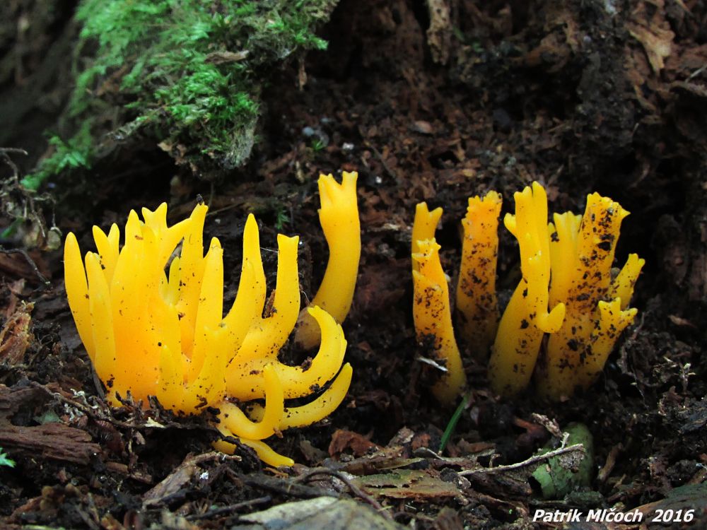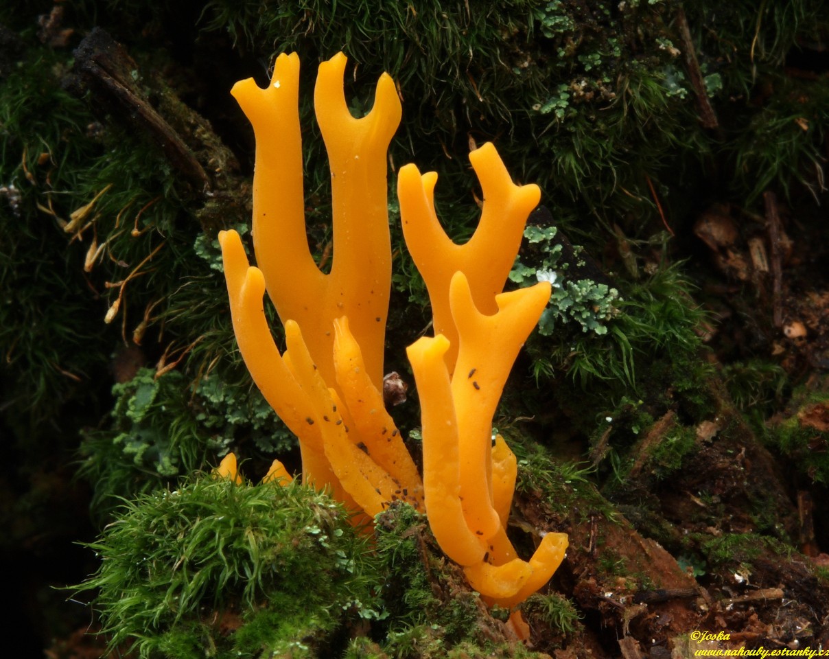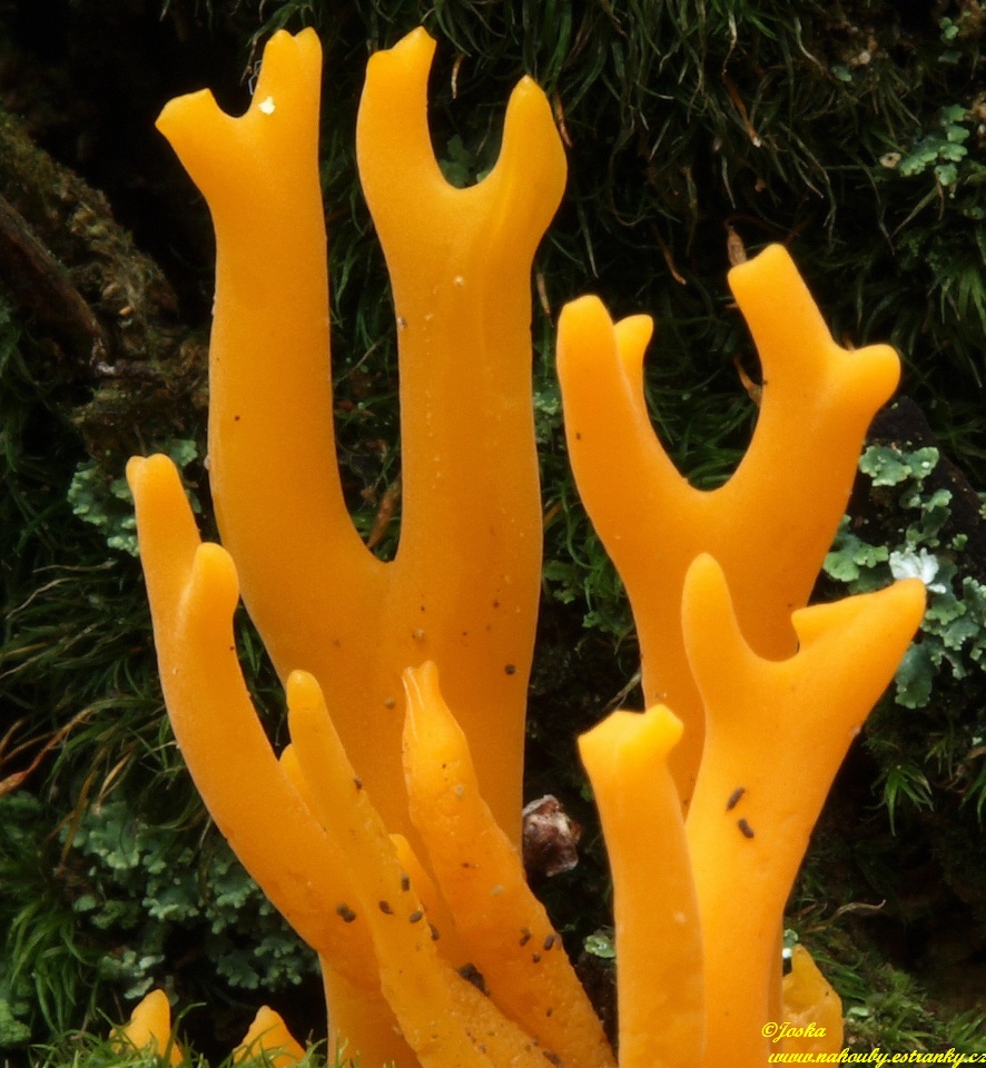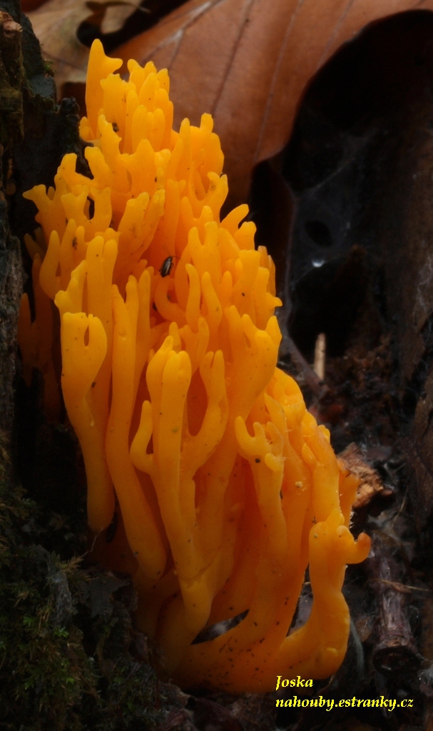 Plodnice je 3-10 cm vysoká, do 3 cm široká, vzpřímená, keříčkovitě rozvětvená, s nedělenými nebo málo parohovitě dělenými větévkami, kluzká, pevná, tuhá, barvy zlatožluté až oranžové, často bíle poprášená, lepkavá.