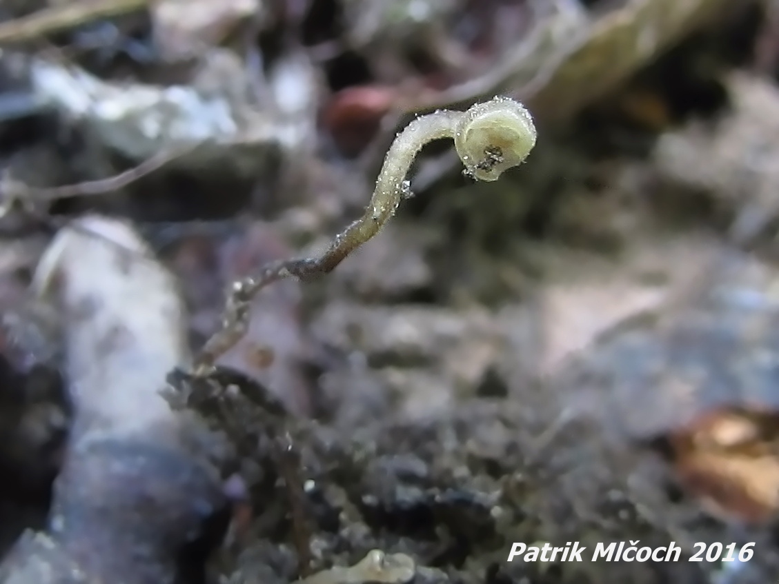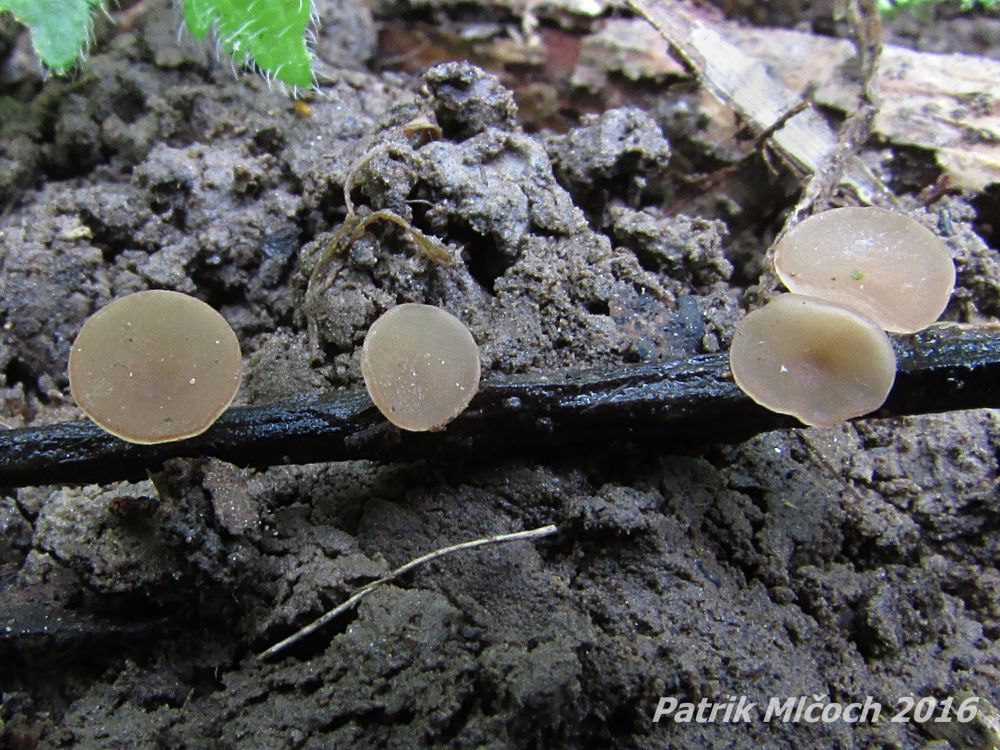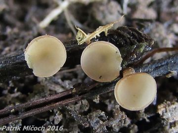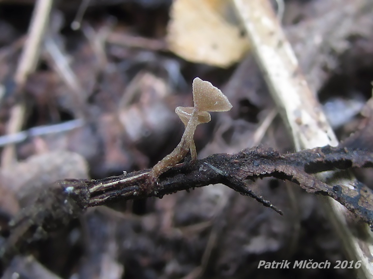 Drobné houby, tvořící na hoře kalíškovité apothecia 1 - 3 mm v průměru, později miskovitého tvaru, se stopkou dlohou 1 - 5 mm, barvy světlé, hnědavé až poloprůhledného vzhledu, na konci tmavší, přecházející až do hnědočerné barvy.