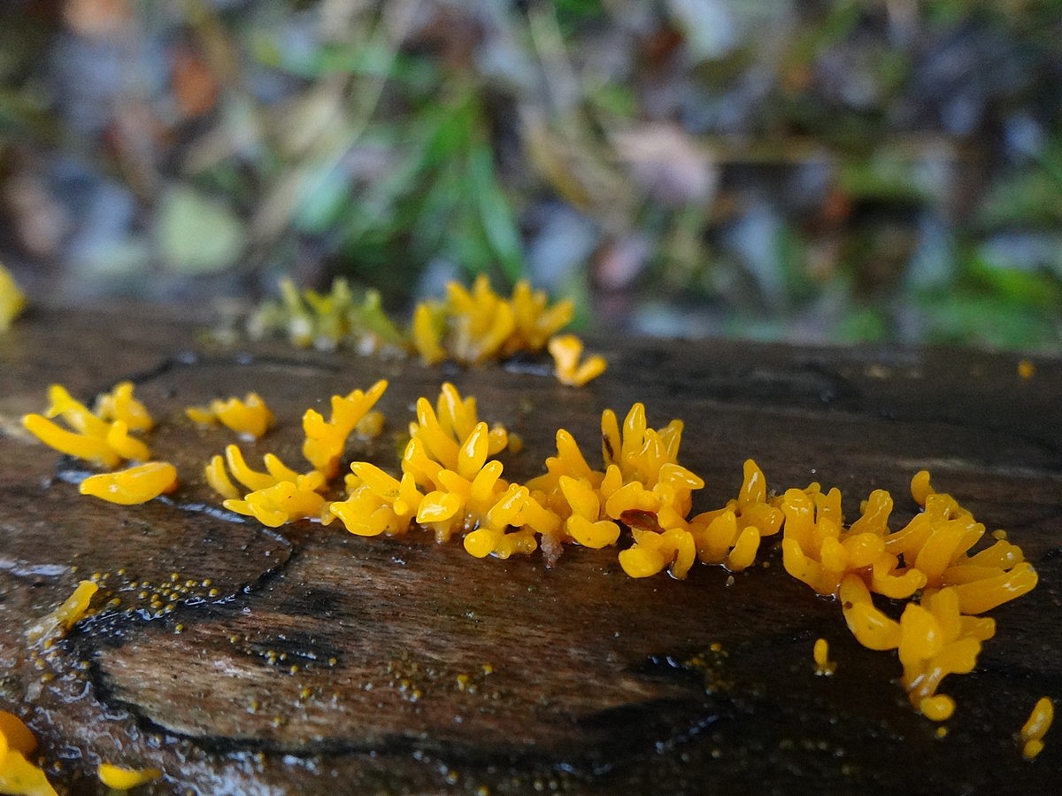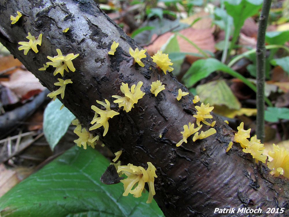 Drobné žluté až žlutooranžové parůžky vysoké většinou do 15 mm. Na rozdí od vzácnějšího krásnorůžku smržovitého (C. glossoides) nemají plodnice oddělenou plodnou a sterilní část.