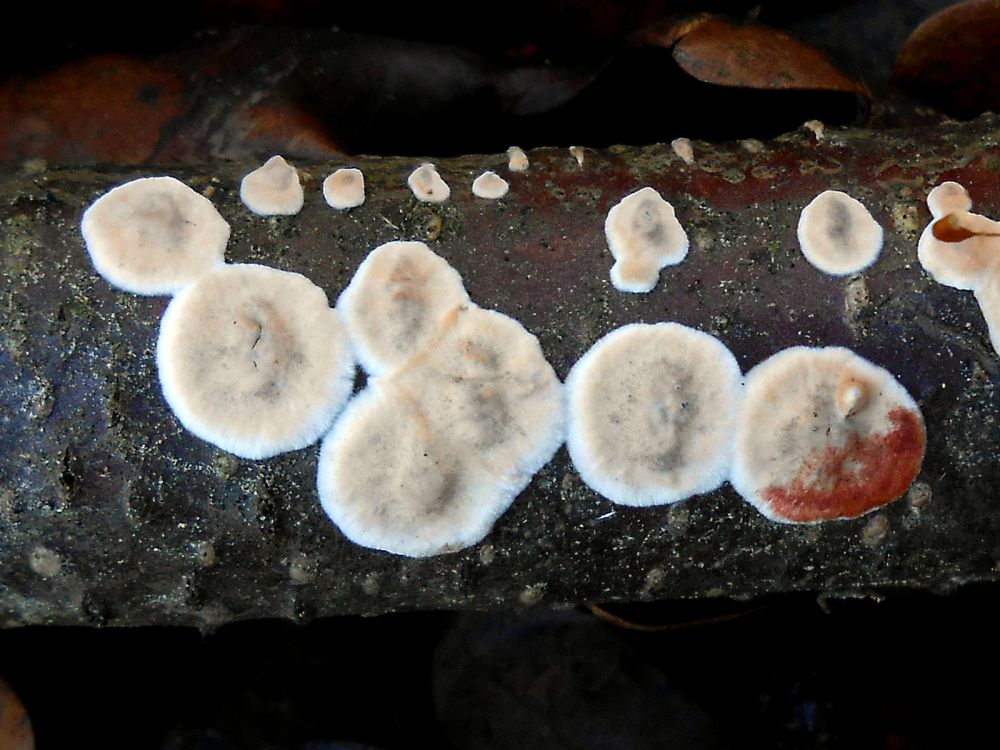 Šedý, nahnědlý nebo bledě oranžový odstín hymenoforu, který po poranění červená; růst na listnáčích.