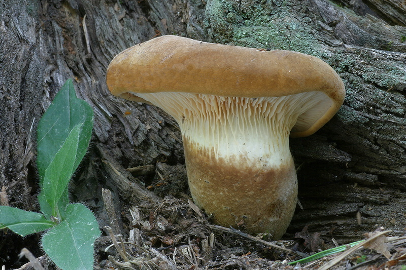 Při pohledu shora se barvou klobouku často plete se suchohřibem hnědým.