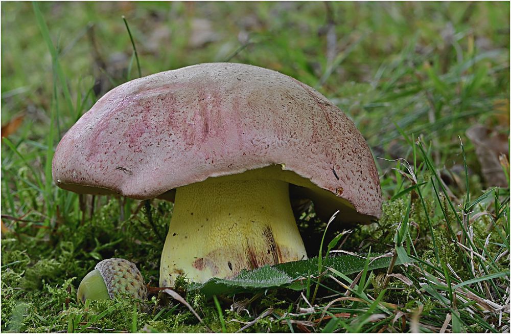 Hřib Le Galové (Rubroboletus legaliae), Lokalita - Chebská pánev, městské, lesnaté parky. Pravidelně, kosením, udržované. Stromové patro tvoří duby, buky, javory, břízy i jiné listnáče. Z jehličnanů, hlavně, různé druhy borovic. Všechny ostatní, následující, foto příspěvky pocházejí ze stejného místa.