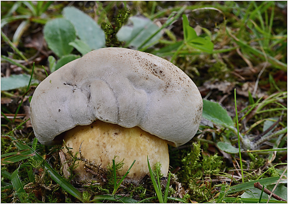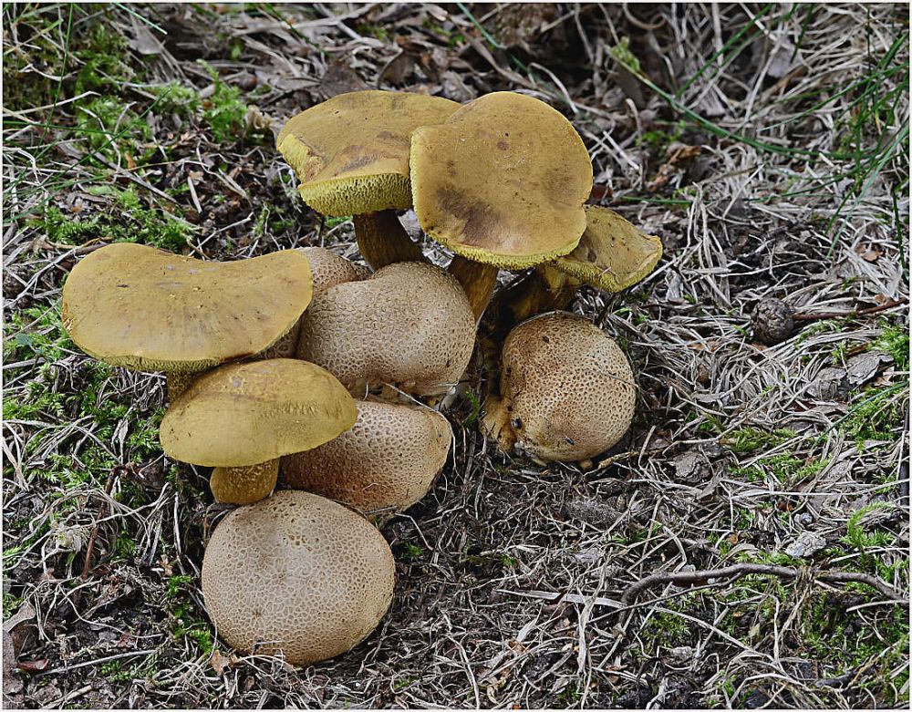 Tak jsme se shodli, že ten klobouk je sametový. Takže by to měl přece jen být Neoboletus xanthopus, jak jsi psala hned poprvé. A předpokládáš správně, zůstal na místě a kromě focení jsme s ním nic nedělali. Byl tam jen jeden, jinak bych ho asi sebral.
