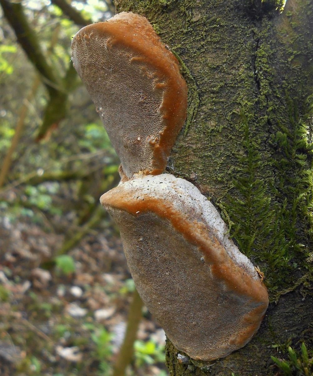 1. Ohňovec ovocný (Phellinus pomaceus) - Parazitická houba rostoucí na ovocných stromech.