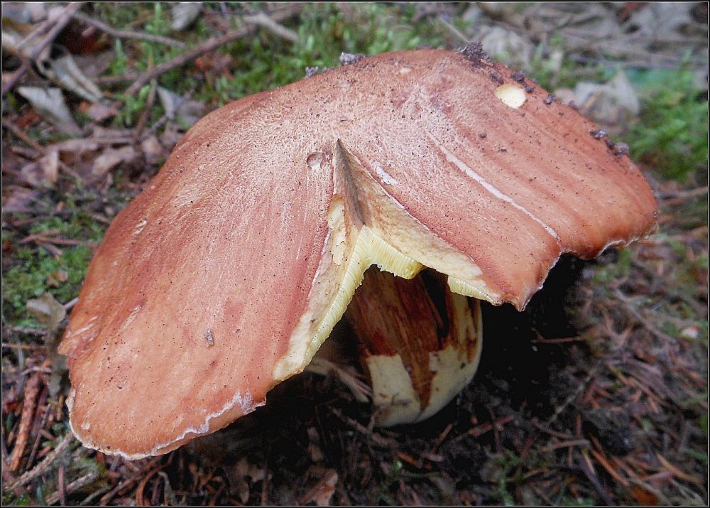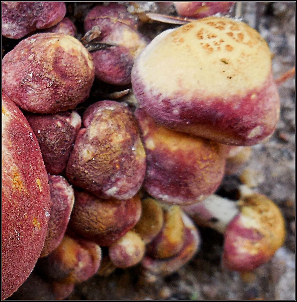 Ta dvojka bude jak říká aleš.Klouzek kravský a slizák růžový.To mně vůbec nenapadlo a přitom ty houby znám, obě jsem už fotil.Mám tady zaniklý lom s řídkým borovým porostem a mechem a jsou tam každý rok.