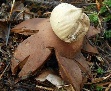 3. Hvězdovka červenavá (Geastrum rufescens) - Jedna z největších hvězdovek. Význačná načervenalou barvou cípů, někdy až tmavě červenou, jako tomu bylo teď, a brvitým peristomem.