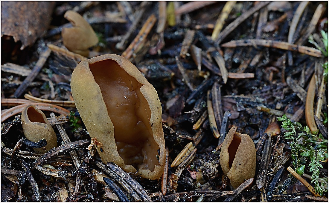 Dnes jsem se byl podívat do vyšších, ale ne nejvyšších partií Krušných hor. Jediné houby, co jsem našel, byly dvě maličké lišky obecné a jeden pokroucený, ale kupodivu zdravý hřib hnědý. Proto dodatečně prezentuji výsledek mého snažení z minulého týdne po dešti, cca o 200m výš.