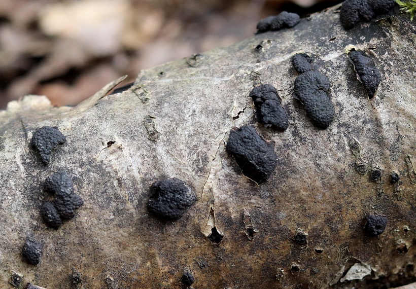 Ve spadu pod duby červenými, na číškách žaludů, tlejícím listí, drobných větvičkách, občasný výskyt růstu pavučinovky zlatožluté (Arachnopeziza aurelia).