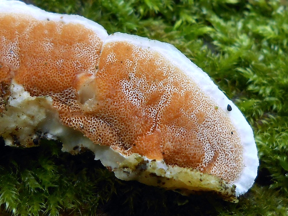 3. Slizopórka dvoubarvá (Gloeoporus dichrous) - Celkem vzácná houba rostoucí na mrtvém dřevě listnáčů. Je význačná hlavně zbarvením pórů. Zařazena v Červeném seznamu jako VU (zranitelný druh).