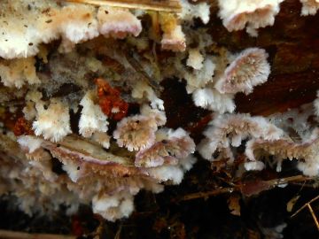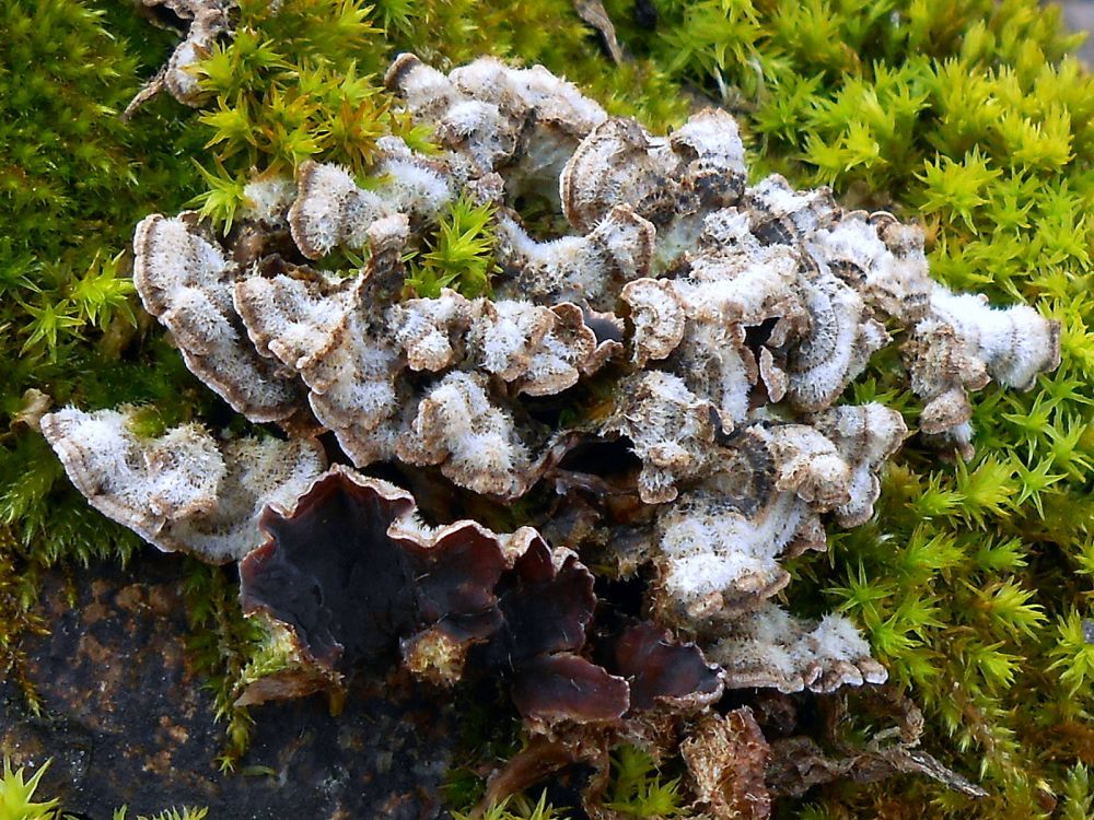1. Pevník nachový (Chondrostereum purpureum) - Když je starý, tak barva klobouku vybledá, že vypadá trochu jako pevník plstnatý, ale hymenofor zůstává víceméně stejný. Zaměňovali jste to za boltcovitku mozkovitou, která ten hymenofor má více takový mozkovitý.