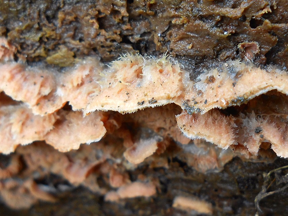 U jedničky mne napadl pevník kaštanový - Lopharia spadicea / Porostereum spadiceum.