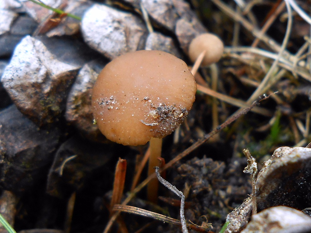 3. Penízovka provázková (Strobilurus stephanocystis) - Druh penízovky rostoucí na borových šiškách. Poněvadž je z fotky nerozlišitelný od penízovky nahořklé, tak jsem samozřejmě počítal i penízovku nahořklou, od níž se liší zejména mikroskopicky, a to charakterem cystid.