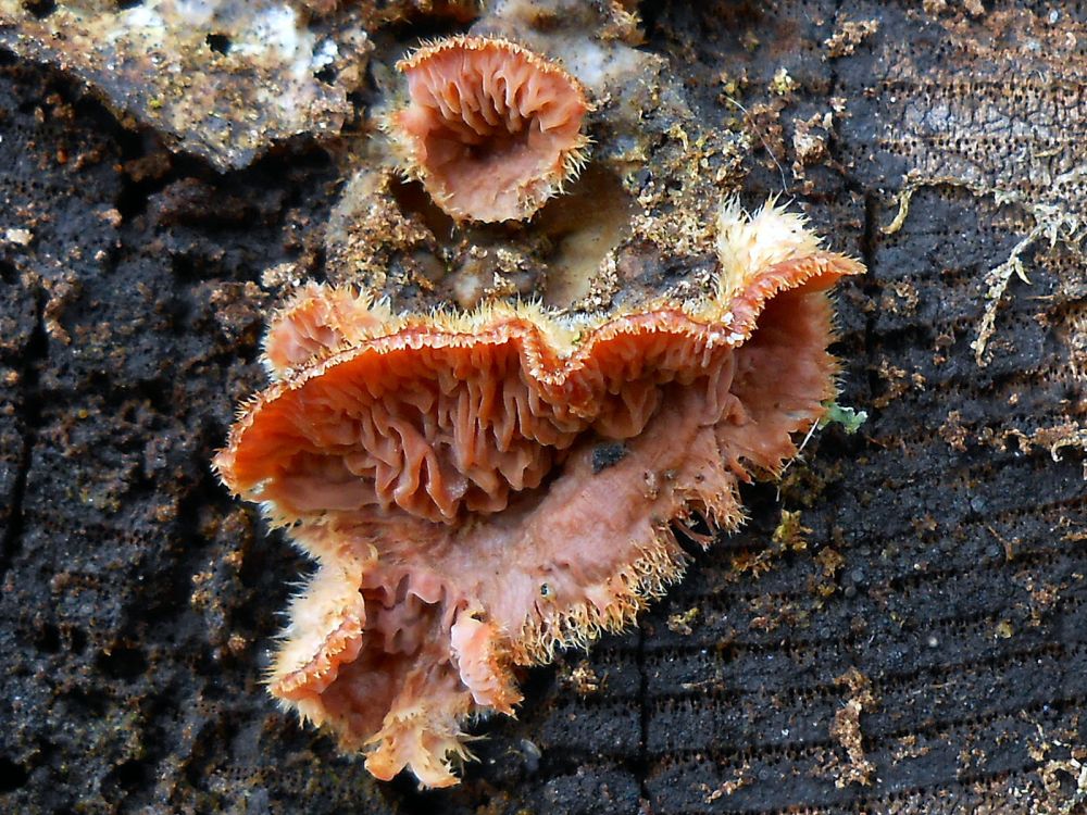 1. Bránovitec jedlový (Trichaptum abietinum) - Někdy se plete s bránovitcem hnědofialovým, který má ale potrhaný až skoro lištovitý hymenofor. Zítra asi založím položku do atlasu, tak tam vysvětlím všechny zásadní rozdíly.