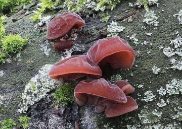 Rosolovka mozkovitá (Tremella mesenterica), na dřevě listnáčů, ve vlhkém prostředí, hojná.
