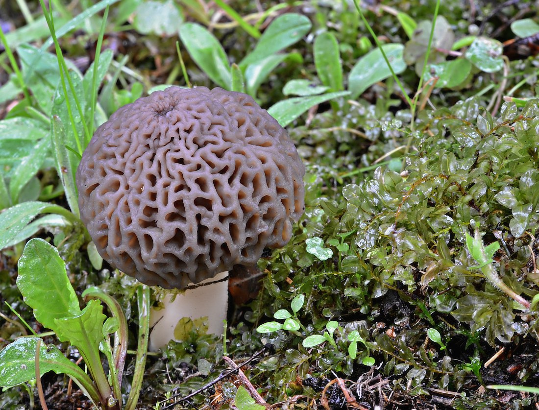 Smrž z okruhu obecný (Morchella sp.), pod jasany