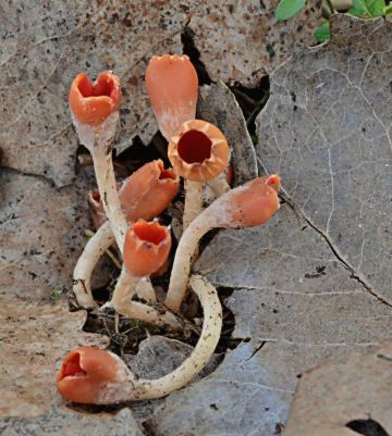 Krasočíška žlutá (Caloscypha fulgens), smíšený listnatý porost. ČS - kat. EN - ohrožený druh.