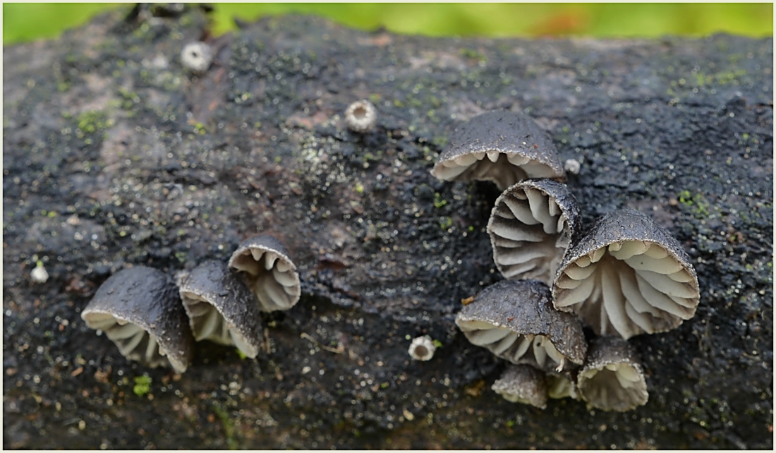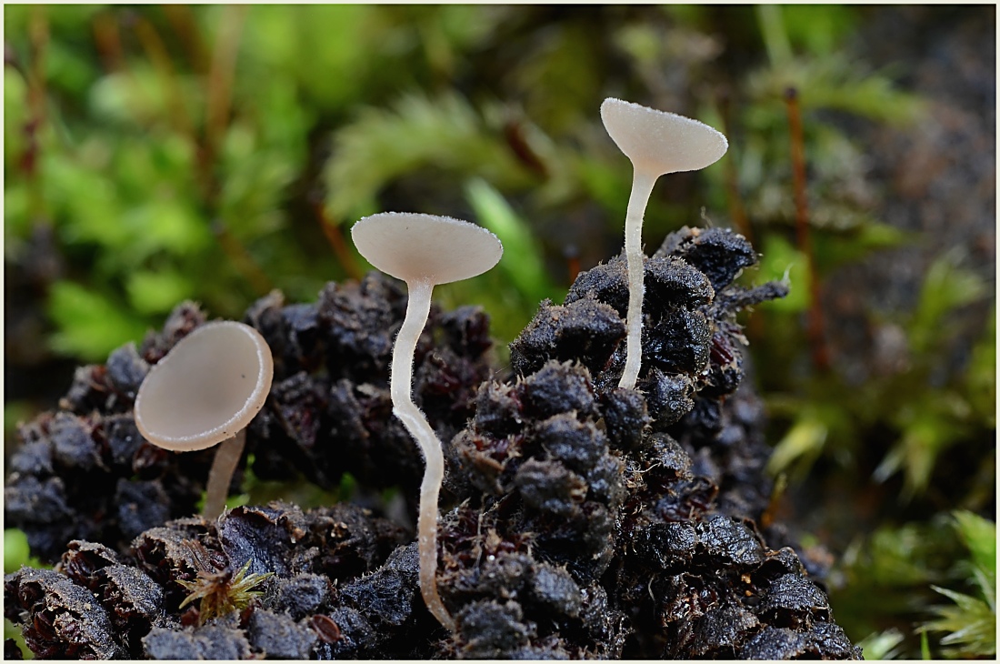 Hlívička číšovcovitá (Hohenbuehelia cyphelliformis), schnoucí kmínky listnatnáčů. ČS - kat. CR, ohrožený druh.
