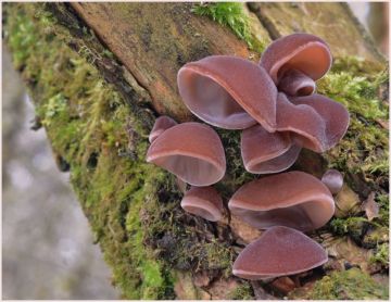 Boltcovitka ucho Jidášovo (Auricularia auricula - judae), schnoucí části bezu černého, kterým je