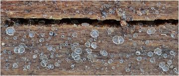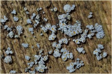Množilka poprášená (Proliferodiscus pulveraceus), na vyvráceném akátu.