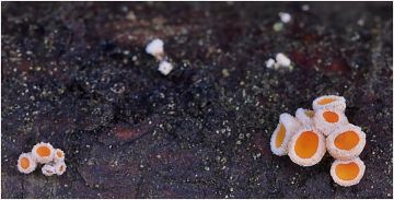 Číšovec nahloučený (Merismodes anomala), tlející dřevo listnáčů.