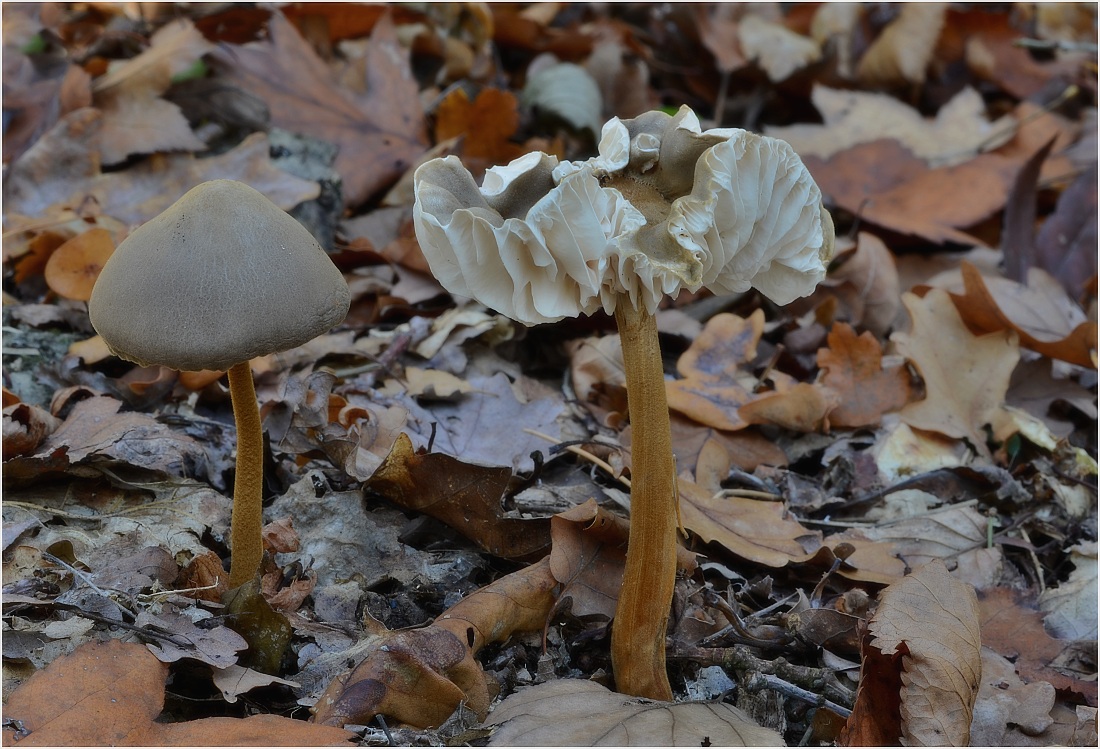 Na stejné lokalitě se šťavnatkami, rostla i tato slizečka dlouhonohá (Xerula pudens),