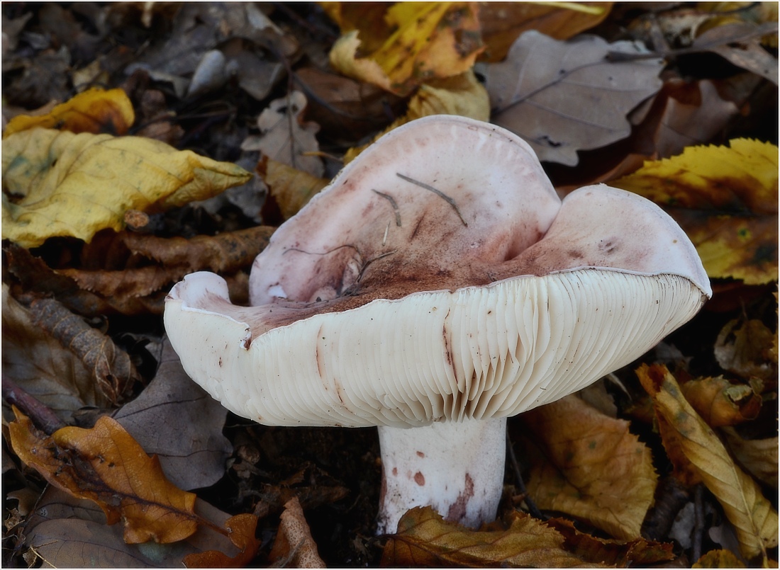 Šťavnatka narudlá, bez záruky. (Hygrophorus unicolor), květnatá bučina - Sl. les.