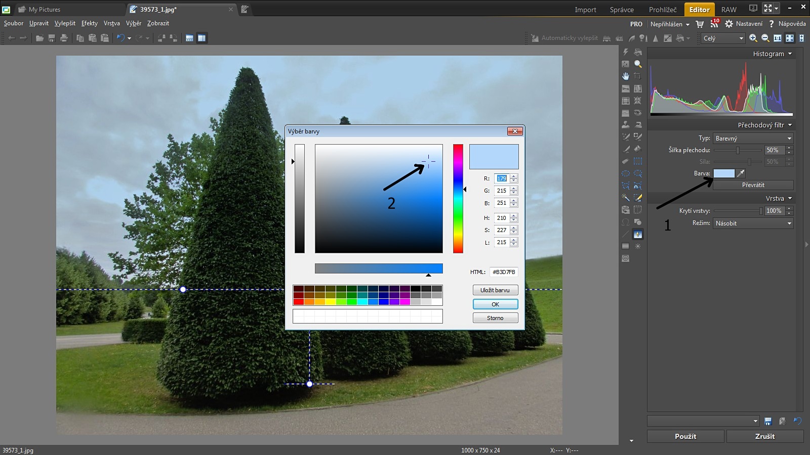 - jakmile se dá v okně barev OK, tak se to do obrázku promítne