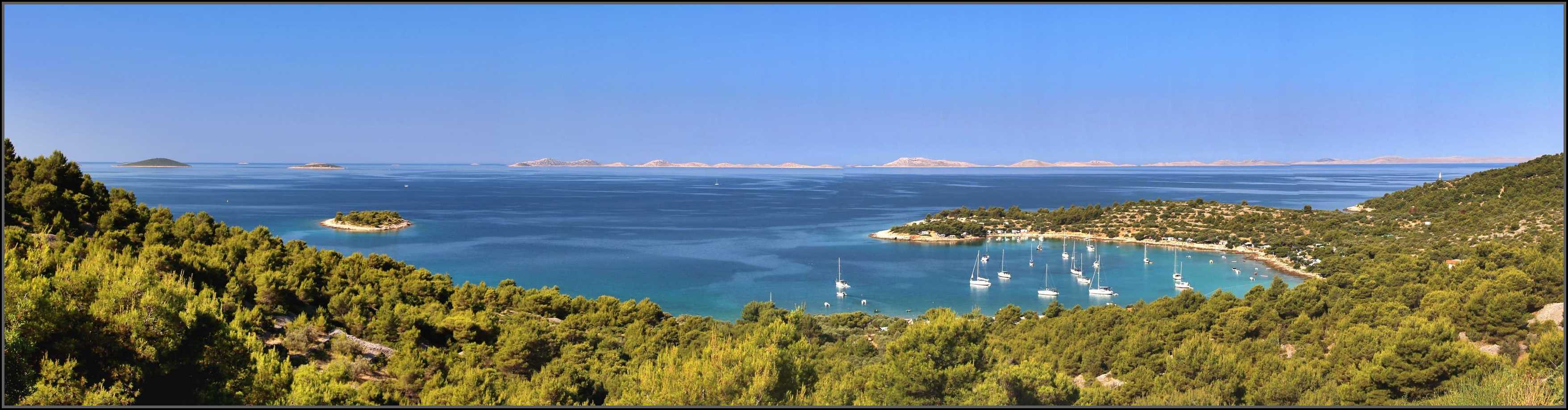 Přidám jedno foto, které není takto upraveno, ale je použit polarizační filtr už na objektivu. Na obzoru jsou ostrovy Kornati (přírodní rezervace) pohledem z ostrova Murter v Chorvatsku v osm ráno, kdy je moře skutečně hóóódně modré.