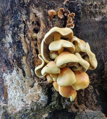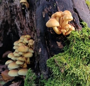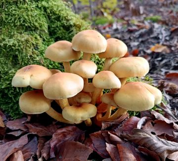 Už od července nacházím u nás v nížině, vždy na jednom jediném místě (stará cesta mezi mladou dubohabřinou a starší doubravou s vtroušenými habry), velmi robustní holubinku ve skupinkách i trsích s nápadným znakem - žlutou až žlutookrovou bází třeně. Dlouho jsem ji nedokázal zařadit, ale po konzultaci s atlasem holubinek (Socha, Hálek, Baier, Hák) se domnívám, že jde o lepkavou statnou, která narozdíl od běžné lepkavé, roste i v nížinách a v listí. Roste pořád určitě už tři měsíce, fotky jsou dnešní...