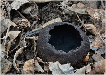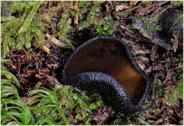Ohnivec černý (Plectania melastoma), smíšený listnatý les, Plzeňsko.