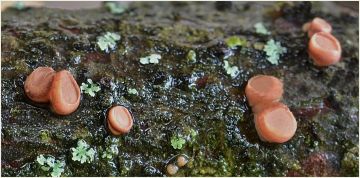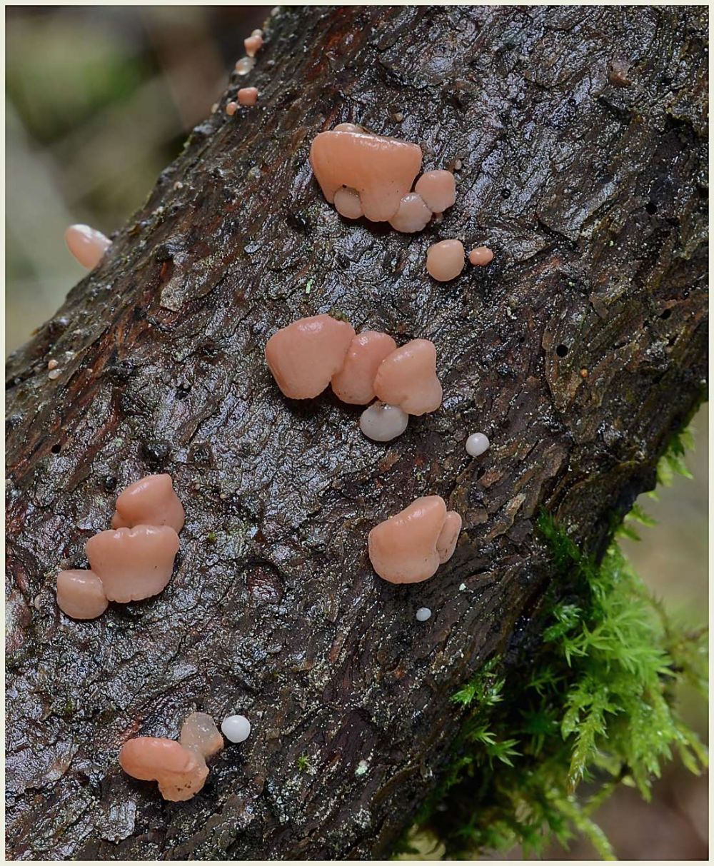 Také tu mám kráterokrčku třešňovou (Craterocolla cerasi), růst na kůře smrkového vývratu, neplodné, anamorfní stadium.